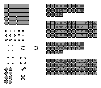 collection of greyscale buttons, sliders, and more!